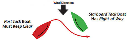 Rule 10, “When boats are on opposite tacks, a port-tack boat shall keep clear of a starboard-tack boat.”
